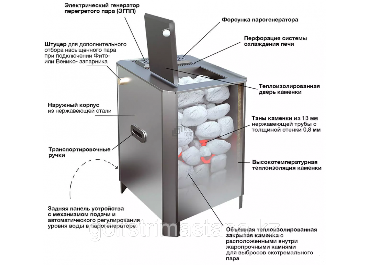 Электрокаменка ПАРИЖАР с ПАРОГЕНЕРАТОРОМ для бани и сауны