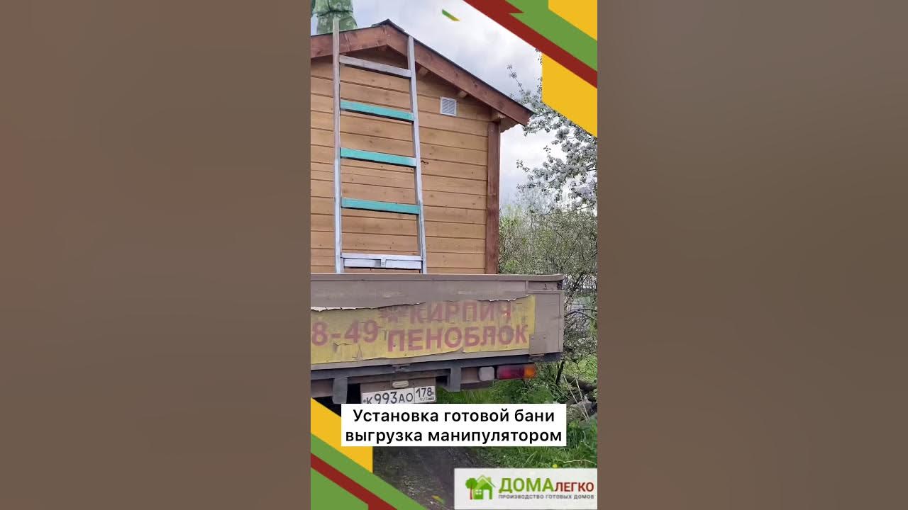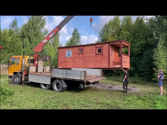 Установка мобильной бани. Выгрузка манипулятором