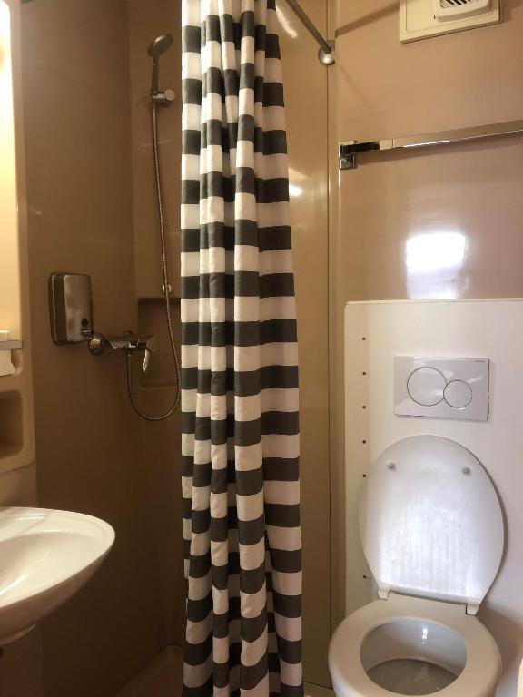 Дизайн ванной комнаты с душевой кабиной совмещенной с туалетом, скандинавский стиль