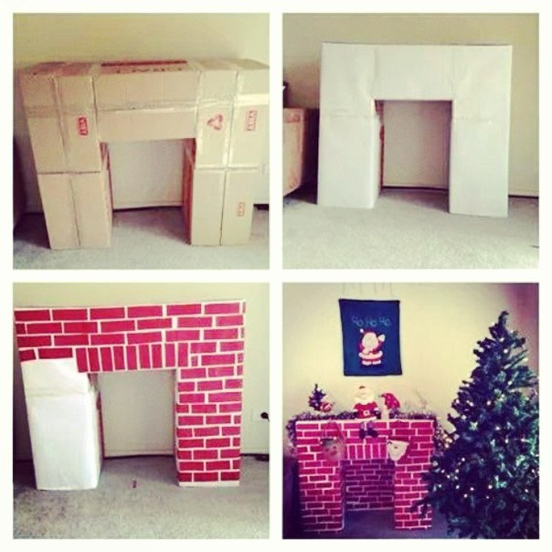 DIY Christmas Fireplace made from Cardboard
